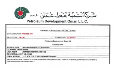 近日,久立管件被正式授予“阿曼石油開發(fā)公司(以下簡(jiǎn)稱PDO)批準(zhǔn)供應(yīng)商證書”,批準(zhǔn)包括了奧氏體不銹鋼、雙相鋼,超級(jí)雙相鋼和鎳基合金等材質(zhì)無縫和焊接管件,